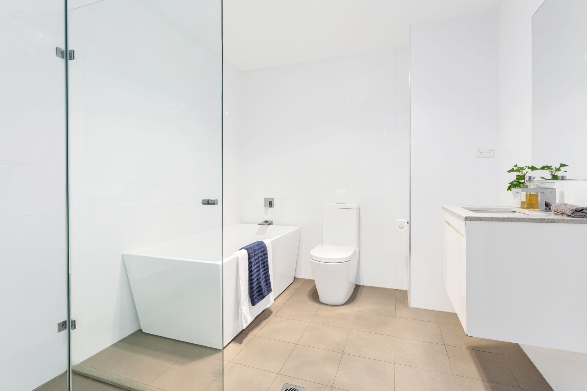 • Modern bathrooms with floor-to-ceiling tiles