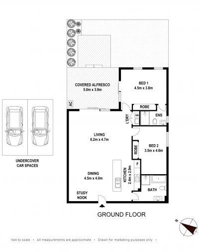 • Two spacious bedrooms, both with mirrored built-in wardrobes; main with ensuite